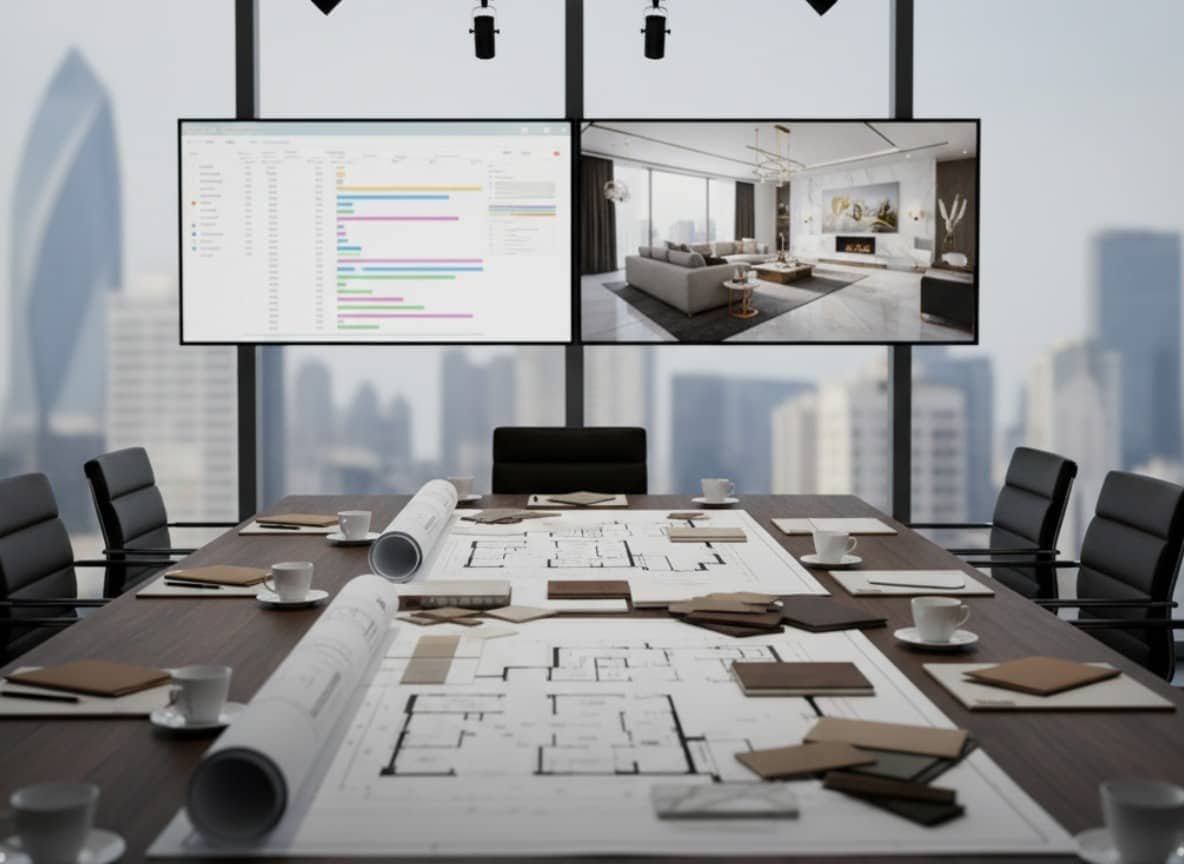 We provide a complete range of services including residential interiors, commercial interiors, refurbishment, bespoke design solutions, space planning, project management, and turnkey solutions. Each service is tailored to client needs and UAE market standards.